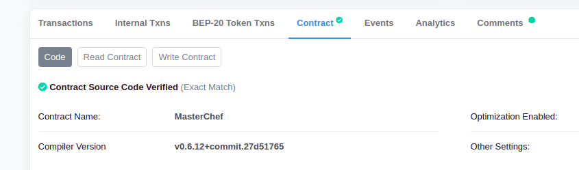 Rồi giờ thì check xem ông owner này có phải MasterChef không. Vào contract -> code để xem name contract