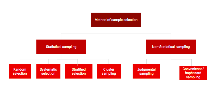 Rủi ro lấy mẫu 5% (độ tin cậy ~ 95%) có nghĩa là chúng ta chấp nhận rủi ro 5 trong 100 mẫu sẽ không phản ánh các giá trị sẽ thấy nếu toàn bộ dân số được kiểm tra. Đánh giá viên phải ghi lại công việc lấy mẫu, bao gồm: