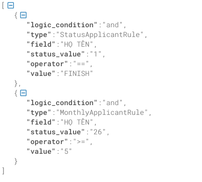 - Rule nâng cao nếu họ muốn kiểm tra 1 field nào đó trong kết quả thu thập
