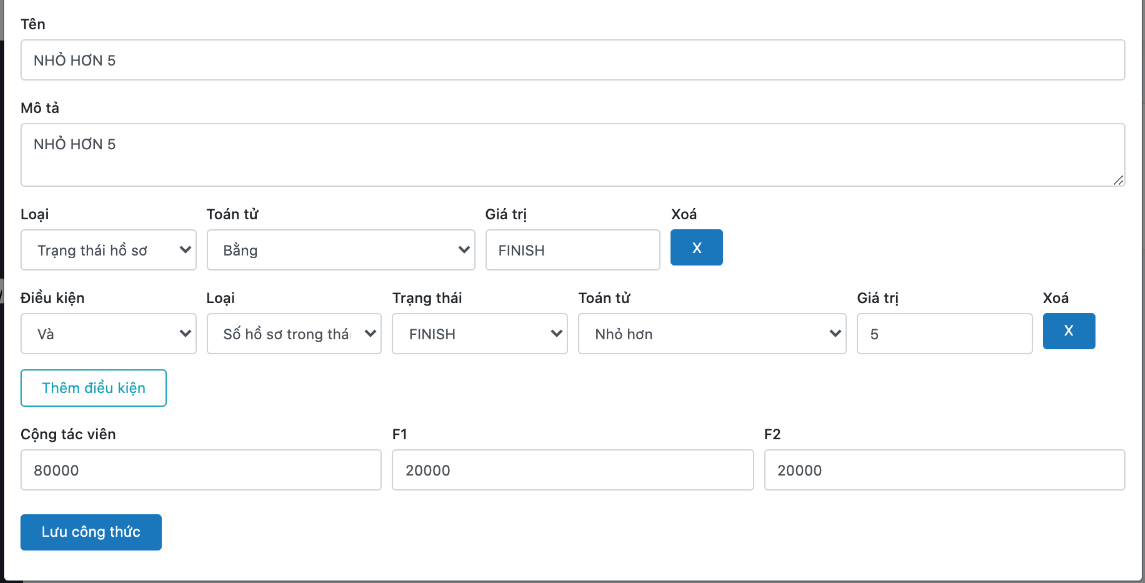 Việc này dẫn đến chúng tôi phải cấu hình 1 vài công thức tính bonus kiểu như sau: