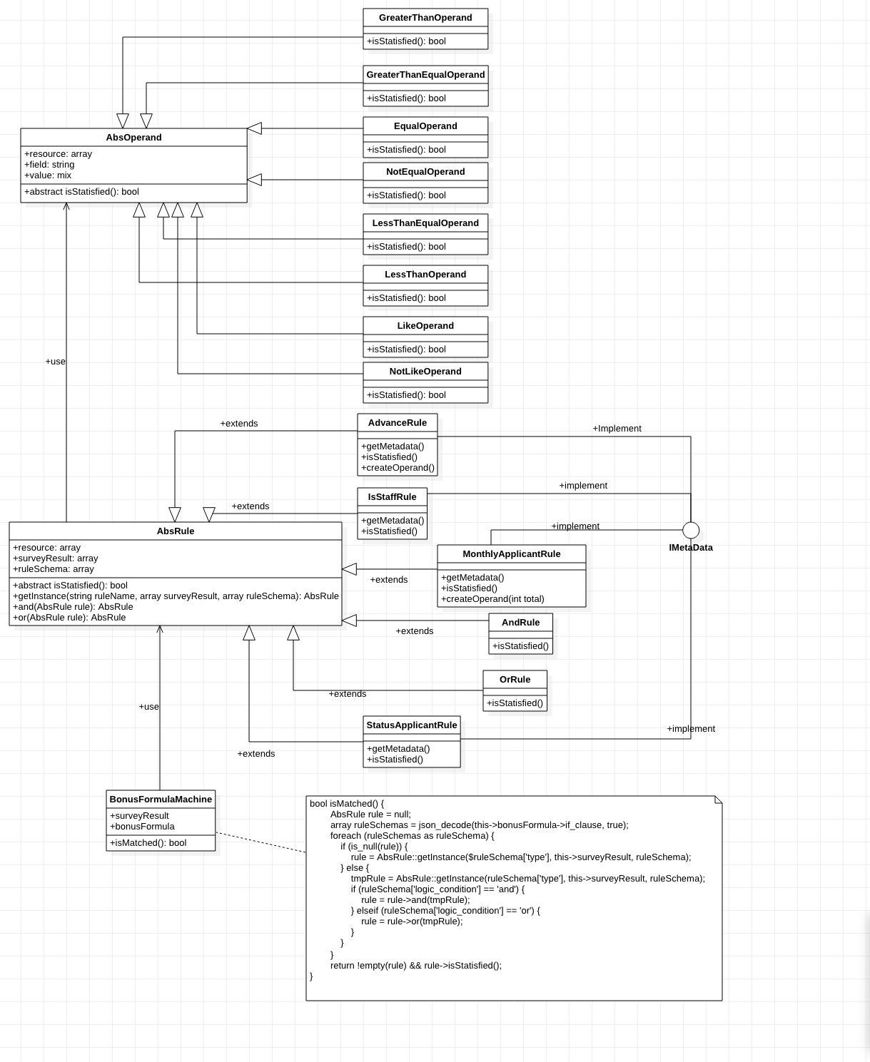 Với từng survey chúng tôi sẽ có những công thức tính hoa hồng (bonus) khác nhau được cấu hình động trong cơ sở dữ liệu để khi cộng tác viên giới thiệu khách hàng họ được tính toán tiền hoa hồng theo quy tắc của công ty. Dưới đây là 2 công thức được áp dụng với survey "Đăng ký làm thẻ tín dụng":