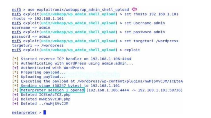 Hàm exploit là sẽ phần thân chính của module. Thực hiện các bước để kiểm tra và tạo phiên đăng nhập vào wordpress. Sau đó tạo ra plugin và thực hiện việc tải plugin đó lên máy chủ dịch vụ wordpress: