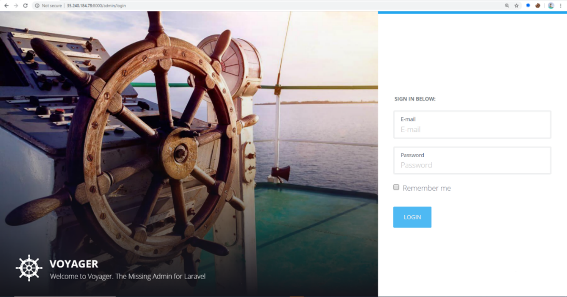 Sau khi chạy chương trình, truy cập địa chỉ http://ip:8000/admin để vào trang quản trị của Voyager: