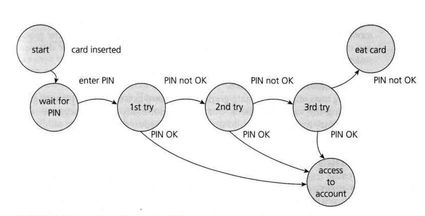Một ví dụ về nhập mã PIN ở cây ATM. Nếu người dùng nhập mật khẩu không hợp lệ trong lần thử đầu tiên hoặc lần thứ hai, người dùng sẽ được yêu cầu nhập lại mật khẩu, nếu người dùng nhập mật khẩu không đúng lần thứ 3, tài khoản sẽ bị chặn.