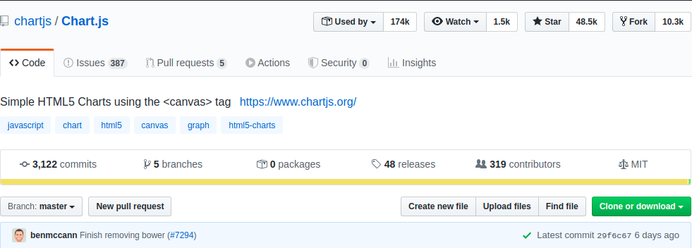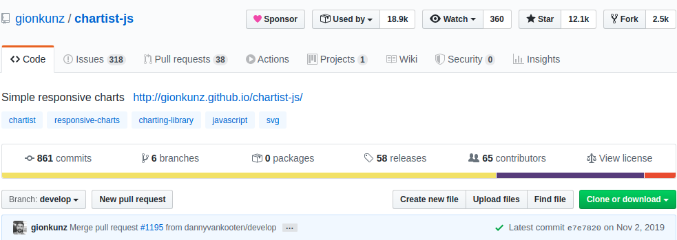 - Chartist: commit cuối cùng của chartist-js là từ tháng 11/2019, tức là đã hơn nửa năm repo này không được phát triển tiếp. Không rõ vì lí do gì mà chủ sở hữu repo vẫn comment trong các issue nhưng lại không merge các pull request cũng như giải quyết các issue đó. Nhưng dù sao thì nếu là mình mình cũng sẽ không lựa chọn sử dụng thư viện này.