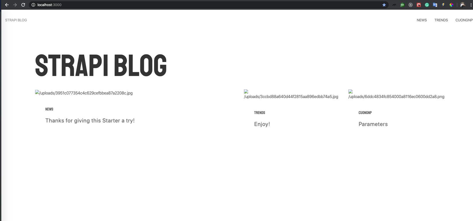 Và trên trình duyệt bạn sẽ nhìn thấy kết quả như hình dưới, thì xin chúc mừng bạn đã setup thành công một blog Strapi và NEXTJS