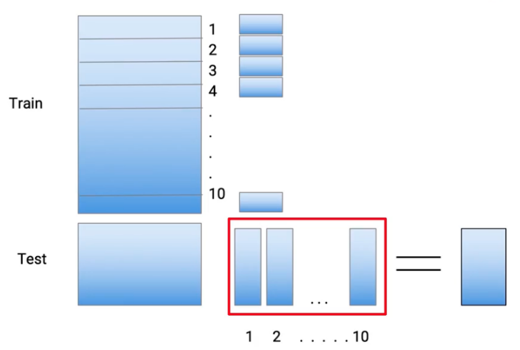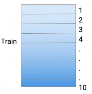 Áp dụng k-fold, ta chia train set thành 10 phần