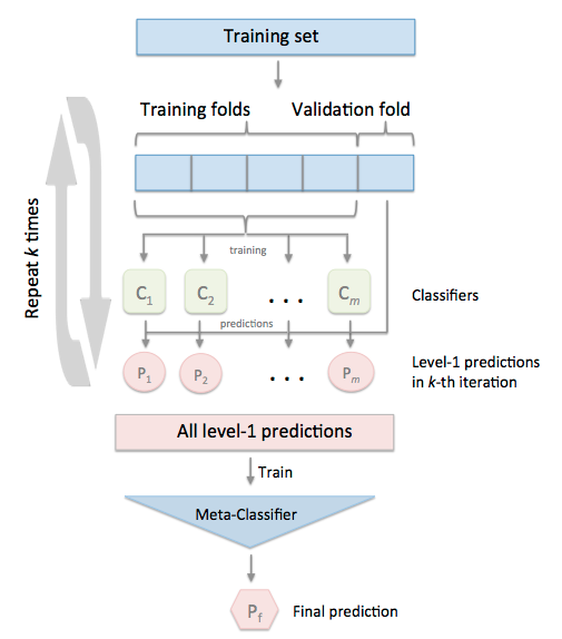 Như vậy, giả sử, có k-fold và có m base-models, số lần predict trên test set trong quá trình huấn luyện là k*m lần (Mỗi base-model predict trên test set k lần). Phương pháp này giúp mô hình tăng accurracy và giảm overfitting nhưng nếu bộ dữ liệu lớn thì tốc độ xử lý của phương pháp này là vấn đề khá nghiêm trọng