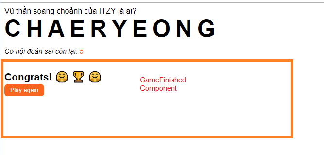 Trong 2 trường hợp đó thì hàm _renderGameFinished sẽ hoạt động và hiển thị component dưới đây với 2 message khác nhau :