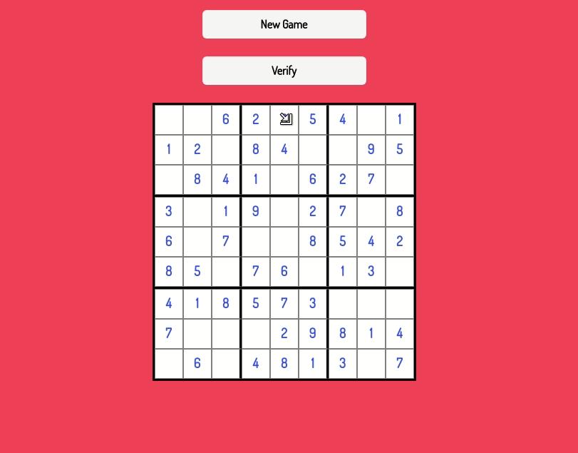 - Màn chính của game có 2 nút: New game (sẽ thoát khỏi màn chơi về màn chọn độ khó) và nút Veriry (sẽ có tác dụng kiểm tra màn chơi của bạn đã đúng hay chưa)