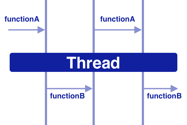 Ở đây functionA sẽ thực thi task A1 và tiếp tục gọi tới functionB để thực thi task B1, sau đó gọi ngược lại functionA thực thi task A2 và cứ thế tiếp tục,...