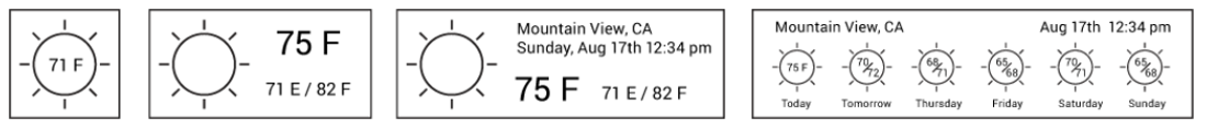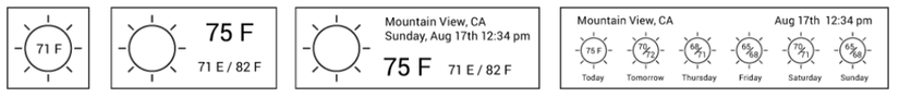 Widget xuất hiển dưới nhiều hình thức khác nhau. Chức năng chính của widget bao gồm hiển thị thông tin, làm phím tắt truy cập nhanh ứng dụng, điều khiển các cài đặt cơ bản của thiết bị, hoặc cung cấp 1 chức năng của ứng dụng và người dùng có thể tương tác, sử dụng nhanh ngay tại màn hình chính (VD: Gửi 1 email, tạo ghi chú, .. ).