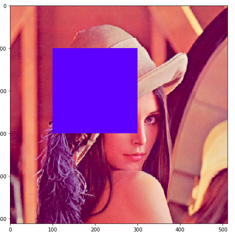 copy[100:300, 100:300] = [255, 0, 0] #assign blue color