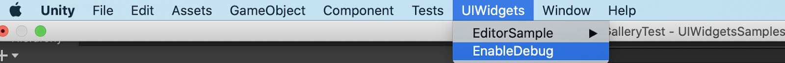 Trong Editor, bạn có thể chuyển đổi chế độ debug/release bằng cách “UIWidgets-> EnableDebug”.