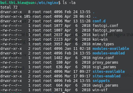 Như bạn thấy, ở trong này có khá nhiều thư mục và tệp. Tuy nhiên, ta chỉ cần đặc biệt chú ý đến nginx.conf và thư mục sites-available.