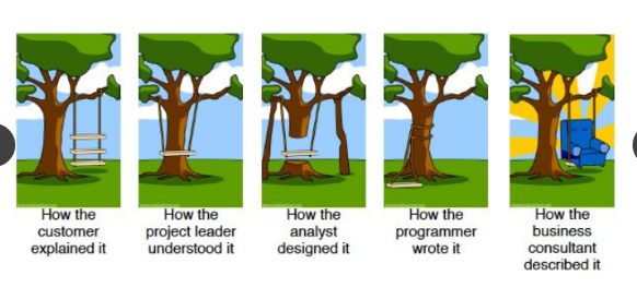 Nhân viên kỹ thuật và end user có thể có ngôn từ khác nhau. Kết quả là họ có thể tin rằng họ hoàn toàn đồng thuận cho đến khi sản phẩm hoàn thiện được đưa ra.