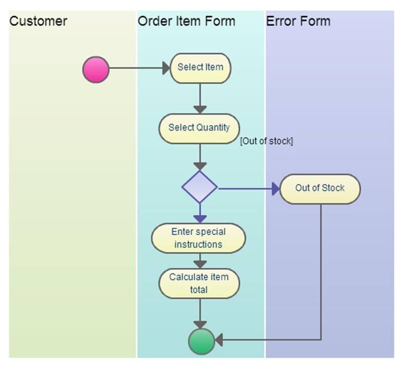 - Biểu đồ hoạt động vai trò tương tự như ký hiệu loại lưu đồ. Trong Sơ đồ hoạt động vai trò, các cá thể vai trò là những người tham gia quá trình, có trạng thái bắt đầu và kết thúc.