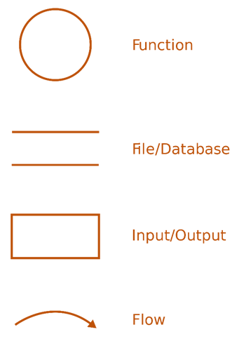 Các thành phần của sơ đồ luồng dữ liệu bao gồm: