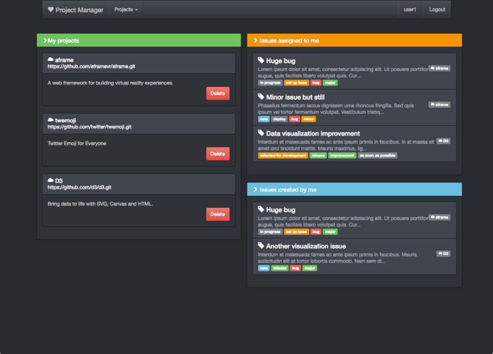 Ứng dụng ví dụ chúng tôi sẽ sử dụng để thử nghiệm trong bài viết này là một công cụ quản lý dự án đang được phát triển. Hiện tại nó có một số tính năng cơ bản:
