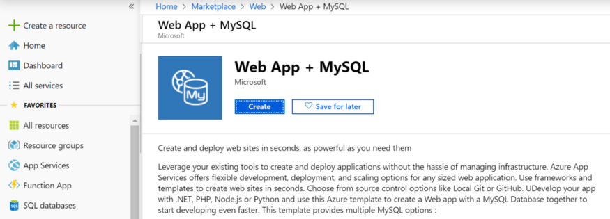 Đầu tiên vào Azure Portal tìm Web App + MySQL và tạo ứng dụng.