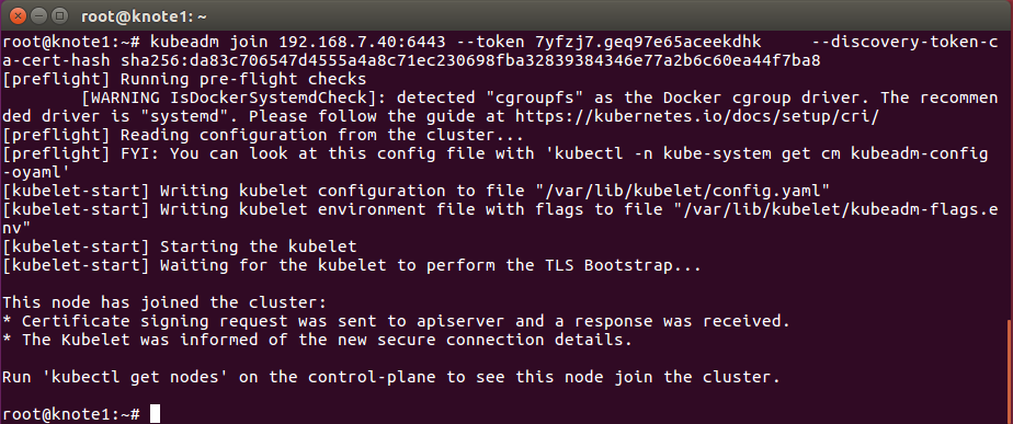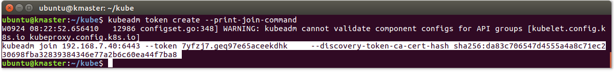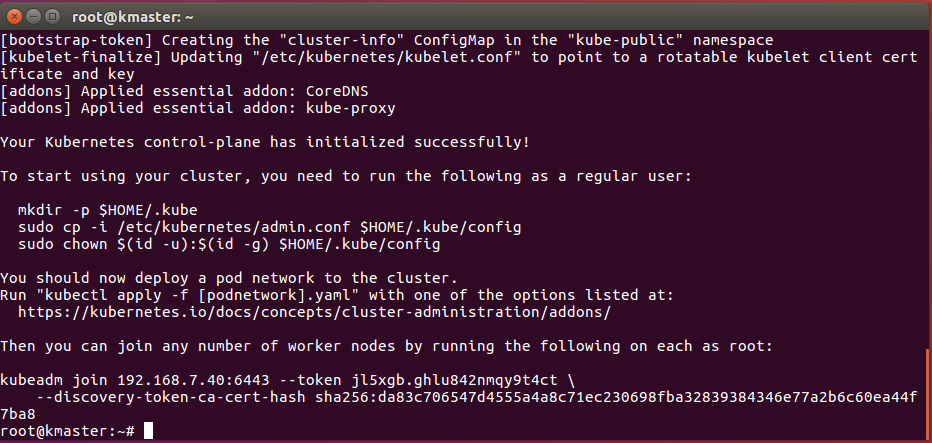 # kubeadm join 192.168.7.40:6443 --token 7yfzj7.geq97e65aceekdhk --discovery-token-ca-cert-hash sha256:da83c706547d4555a4a8c71ec230698fba32839384346e77a2b6c60ea44f7ba8