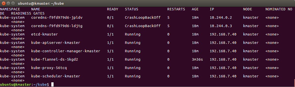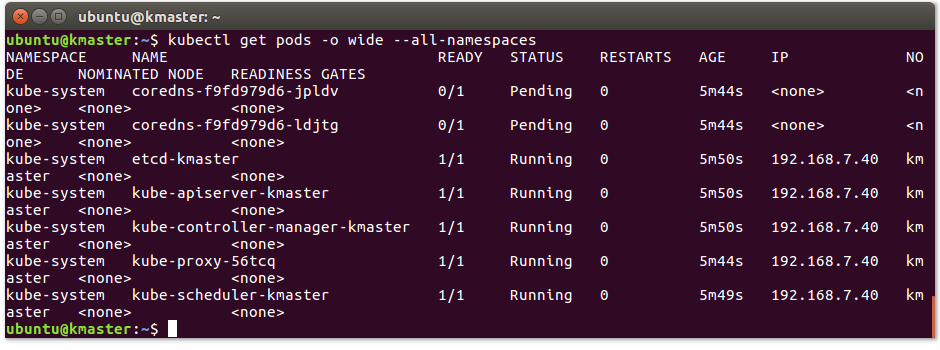 Như bạn có thể thấy coredsn của cùng tra vẫn đang ở trạng thái pending, điều này là do chúng ta đang thiếu một mạng cho pods (pods network)