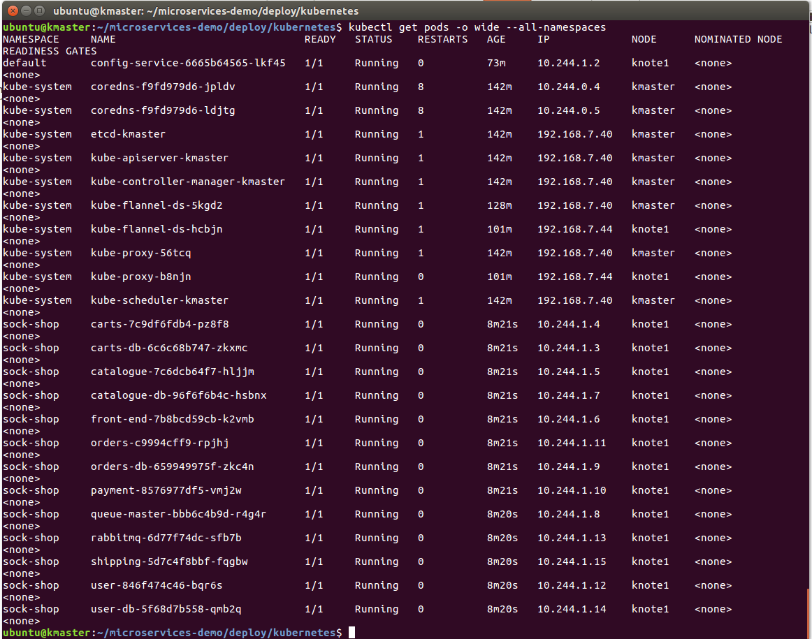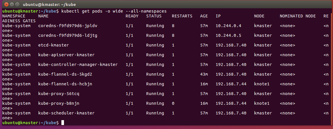 Như bạn có thể thấy ở trên,chúng ta có kube-proxy và flannel network ở máy node knote1