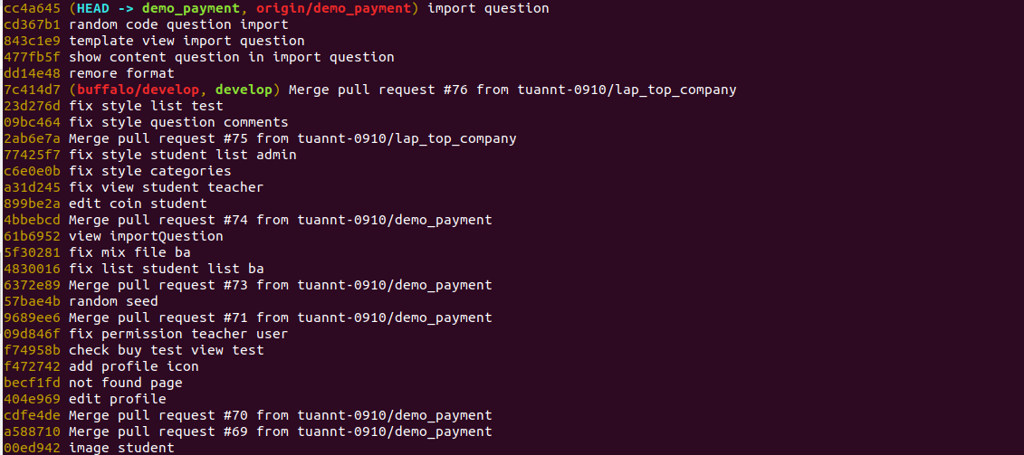 Sau này có lúc tìm lại những pull đã từng đẩy mà khó lọc quớ, chịu lun =)). Nhưng do đợt này theo chuẩn nhiều quá, nên cũng học đòi theo chuẩn các thứ cho bằng bạn bằng bè. Ví dụ ngày trước mình hay commit như sau: