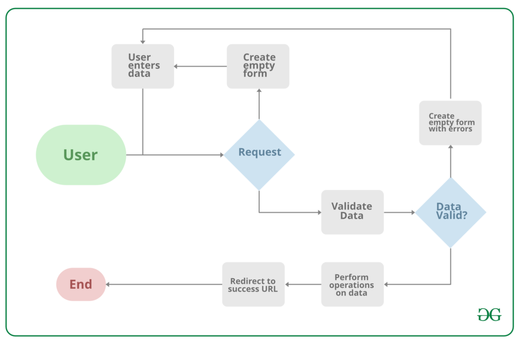 Hình dưới đây mô tả cơ bản quá trình xử lý form của Django:
