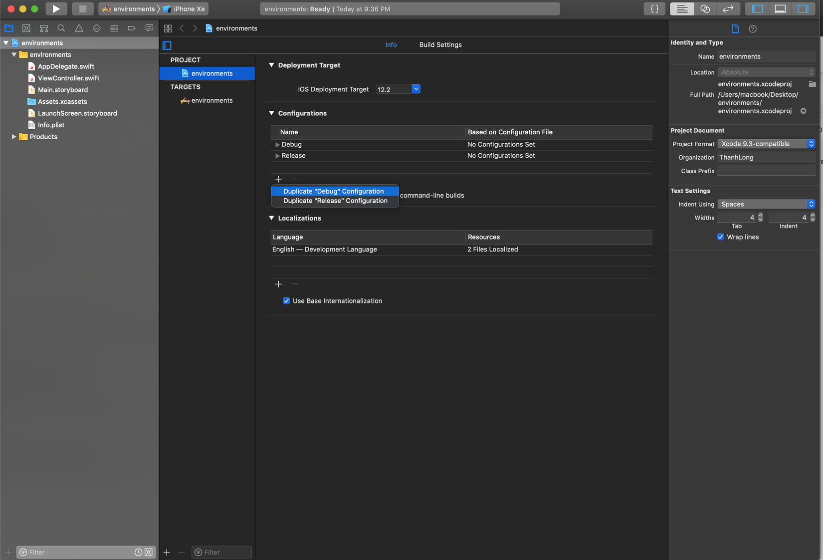 Làm việc với nhiều môi trường trong phát triển dự án và cấu hình trên Xcode