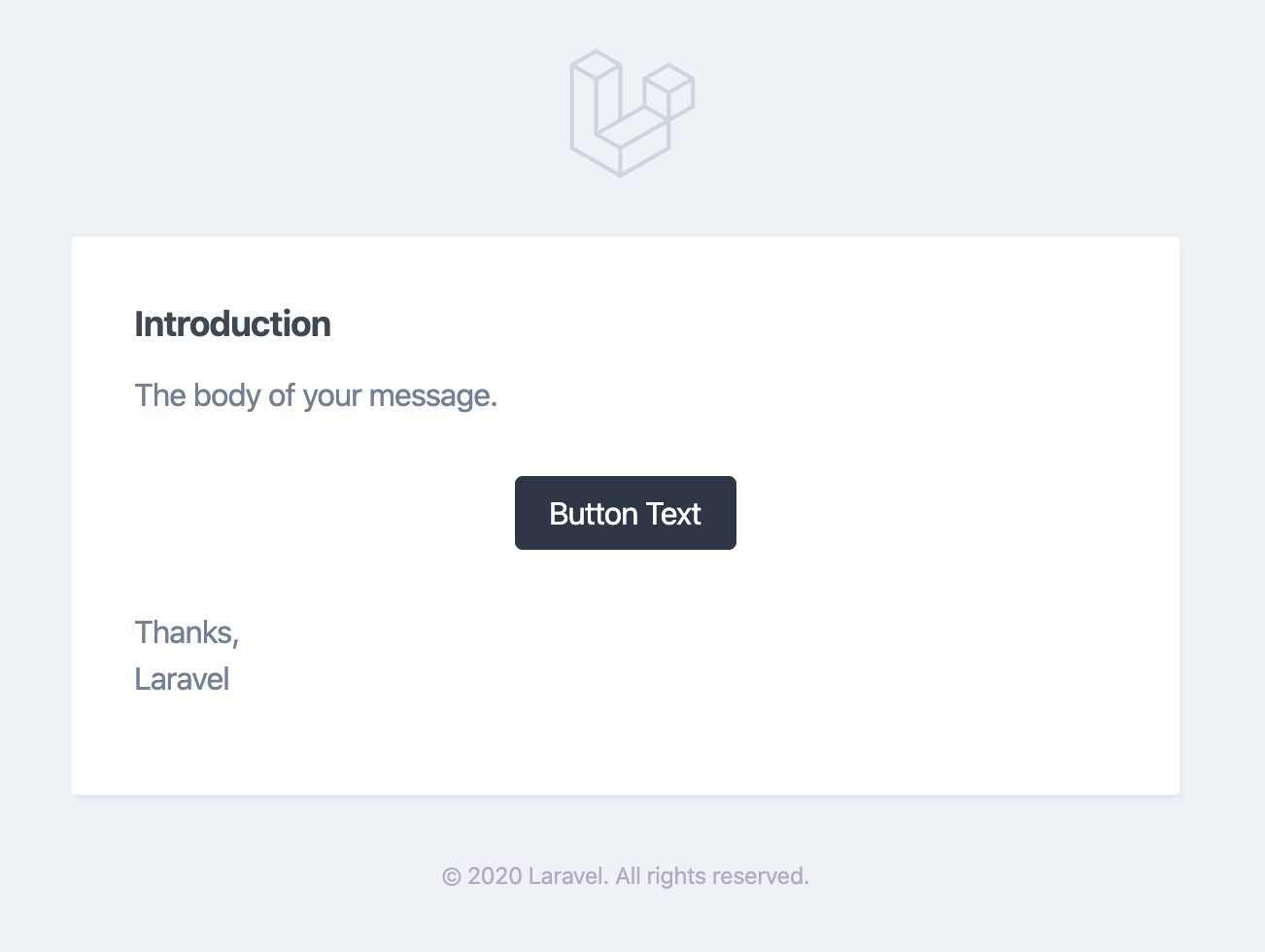 Markdown mail template mặc định đã được làm mới, hiện đại hơn dựa theo Tailwind CSS color palette. Tất nhiên, template này có thể published và tùy chỉnh theo nhu cầu ứng dụng của bạn: