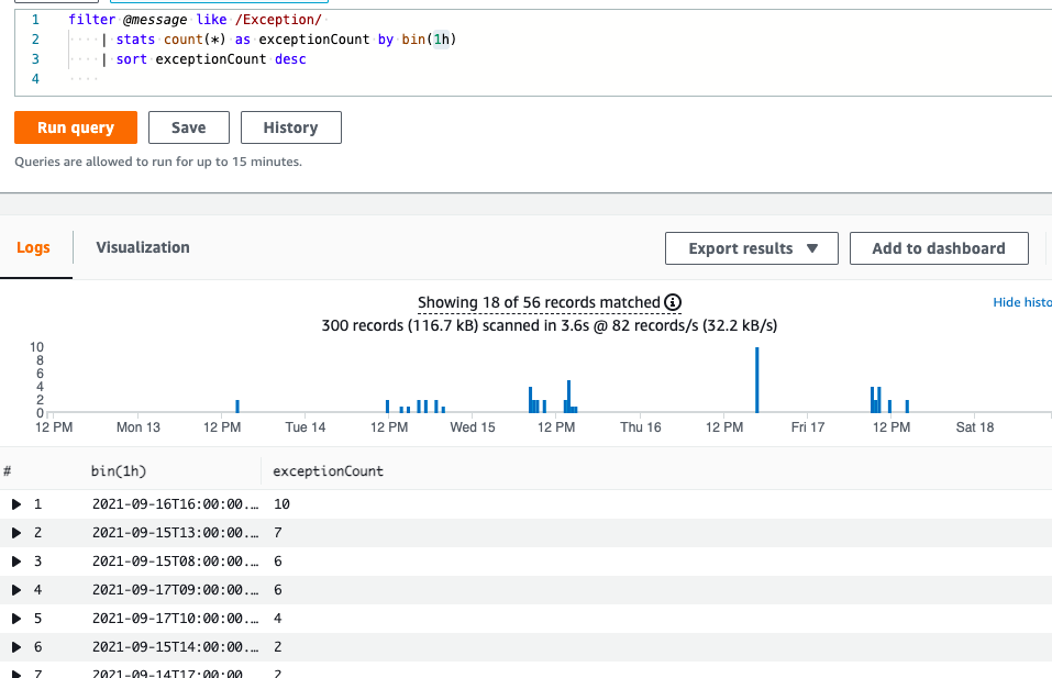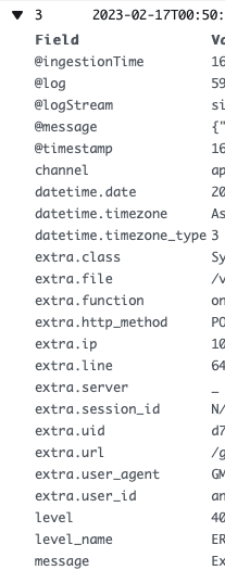 - Cloudwatch tự parse ra các field cho phép mình được sử dụng để query