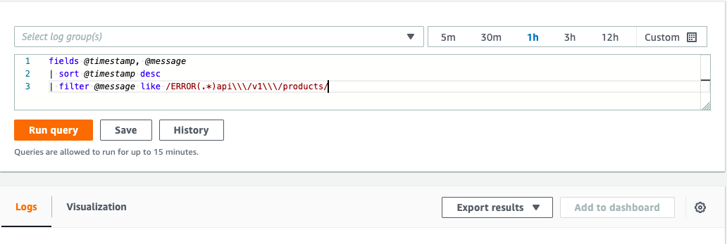 | filter @message like /ERROR(.*)api\\\/v1\\\/products/