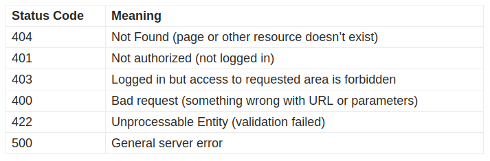 Nếu bạn trả về response lỗi, nó sẽ không chứa mã 2xx, đây là những lỗi phổ biến nhất: