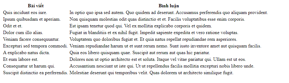 Trong view sẽ có 2 cột, tên bài viết và bình luận mới nhất: