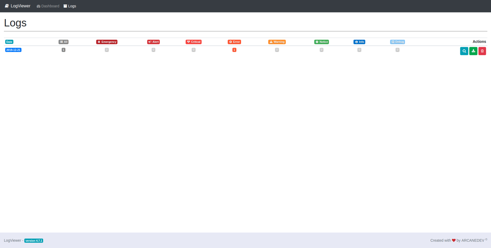 Source code package: https://github.com/ARCANEDEV/LogViewer
