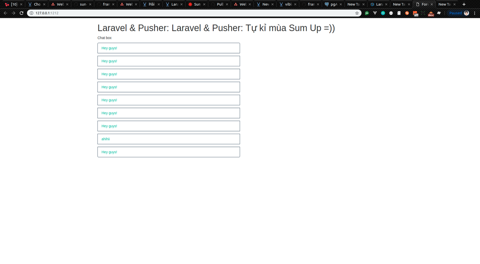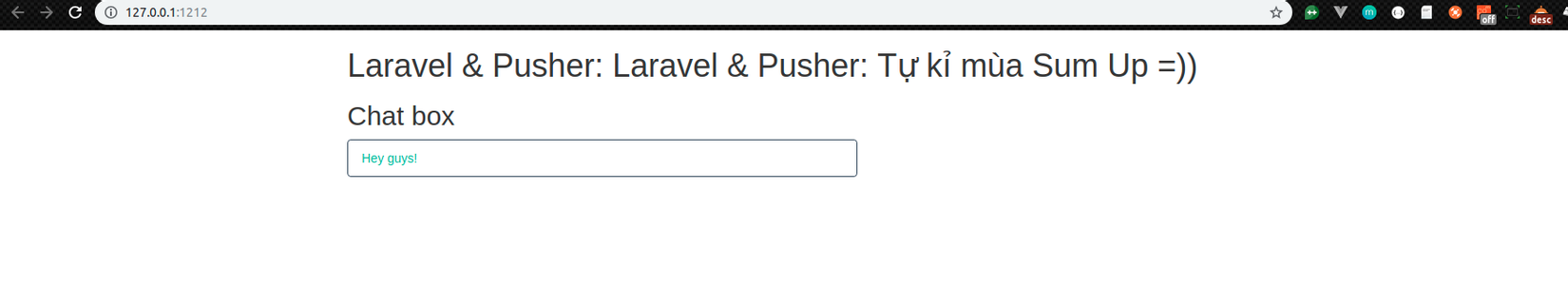 <h1>Laravel & Pusher: Laravel & Pusher: Tự kỉ mùa Sum Up =))</h1>