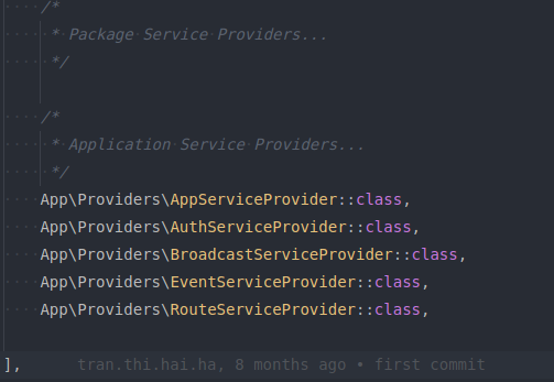 Đầu tiên, trong list provider, bạn bỏ comment cho BroadcastServiceProvider