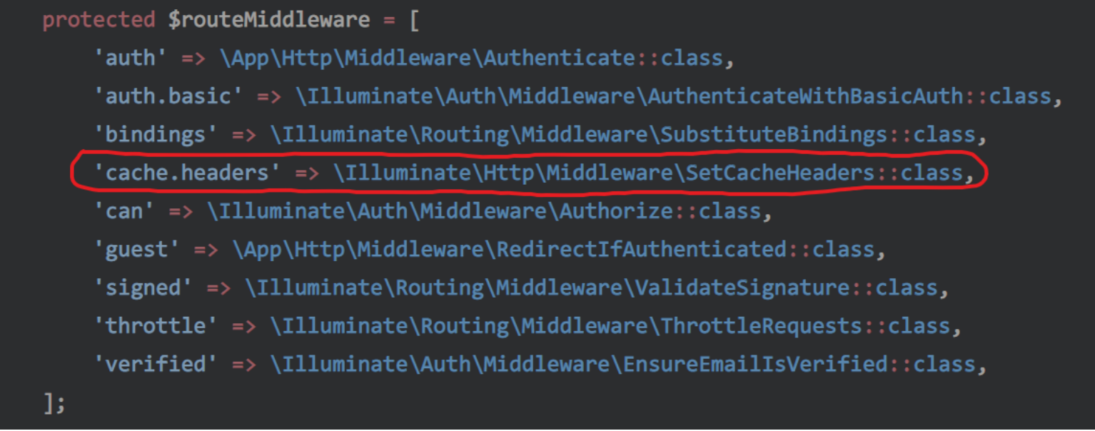 Có rất nhiều middlewares hữu ích đã được đăng ký bên trong Laravel, như authentication mechanisms, authorization, a throttler. Thực tế, bạn có thể biết đến những middlewares này. Ngoại trừ một middlewares. Nó được gọi SetCacheHeaders hay còn gọi là cache.headers. Và nó không được đề cập đến trong tài liệu. Cái này la thật nhé: