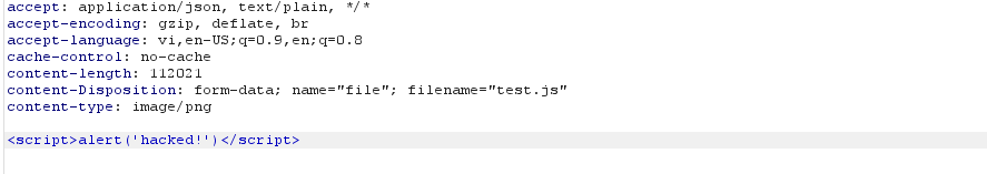 Như mình có nói ở trên dựa vào MimeType server sẽ "đoán" được extension của tệp để thực thi. Bạn validate mime, mimeType bản chất chỉ mới validate content-type. Bằng một số tool hacker sẽ đổi extension của file gửi lên, thêm mã độc và bypass vào hệ thống. Trước giờ mình cứ tưởng validate mimes là đã validate phần extension của tệp rồi. Hình bên dưới là hacker sửa nội dung của tệp và đổi extension về đuôi có thể thực thi.