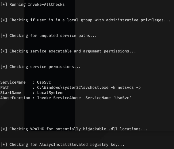 Kiểm tra dịch vụ Weak Service Permissions (ngoài PowerUp có thể sử dụng winPEAS cũng có thể phát hiện ra)