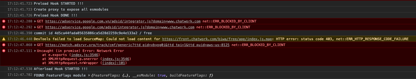 ở đây ta sẽ kiểm tra, chỉ khi thuộc tính được set là __esModule thì ta sẽ log lại các module vào biếnesmodules. OK, còn một vấn đề nữa, chúng ta cần load được đoạn code này đầu tiên, trước khi javascript của Chatwork được load.