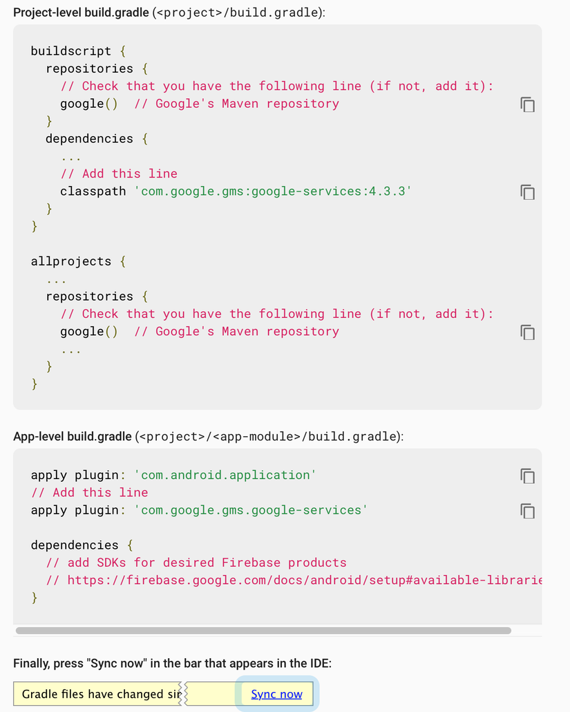 https://firebase.google.com/docs/android/setup https://firebase.google.com/docs/ios/setup