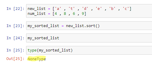 - Note: Có một lưu ý là không gán kết quả trả về list.sort() vào 1 biến vì giá trị của biến đó sẽ là None. Các bạn xem ví dụ nhé: