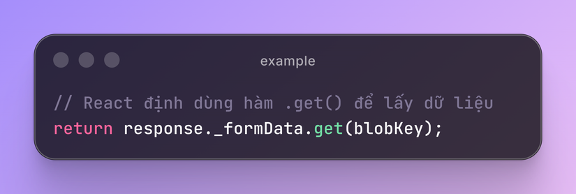 Khi React chạy dòng _formData.get(blobKey), thực chất nó đang thực thi: new Function(blobKey).