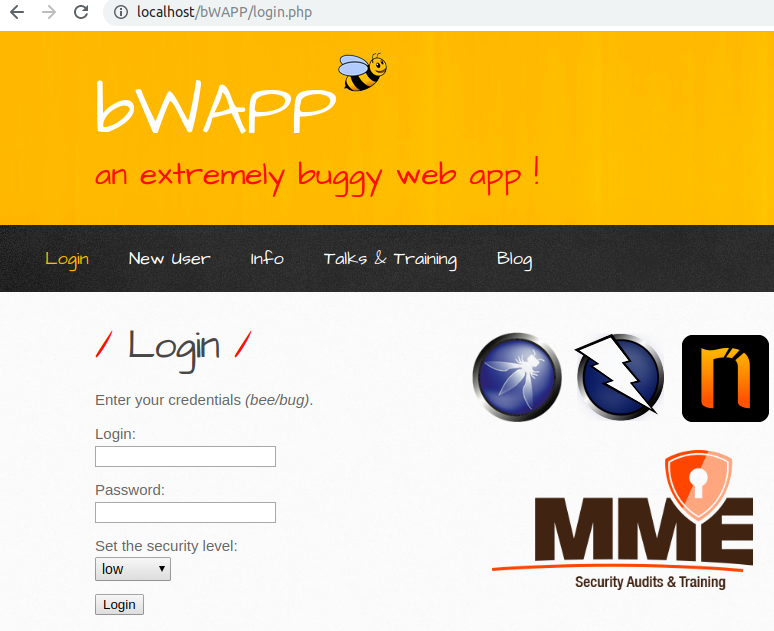 Trước hết chúng ta cần môi trường để thực hành, ở đây mình dùng Bwapp, Bwapp là một ứng dụng web để thực hành khai thác các lỗ hổng web bạn có thể cài đặt tại đây