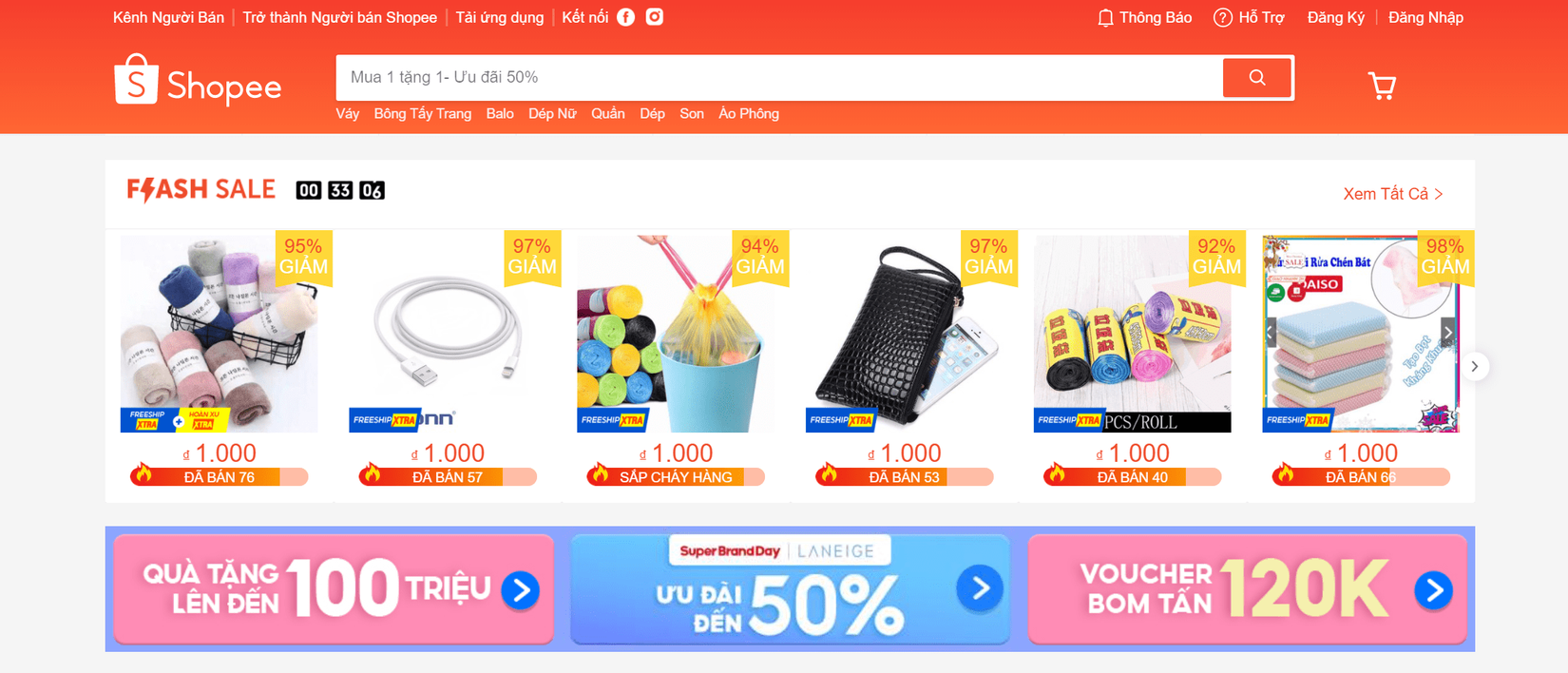 Giao diện của Shopee - Nguồn ảnh: Kmin Academy