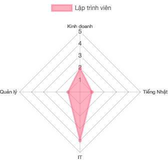 - Ngược lại, biểu đồ sau là của một developer rất giỏi về công nghệ, nhưng chỉ mới chập chững ở 3 kỹ năng còn lại