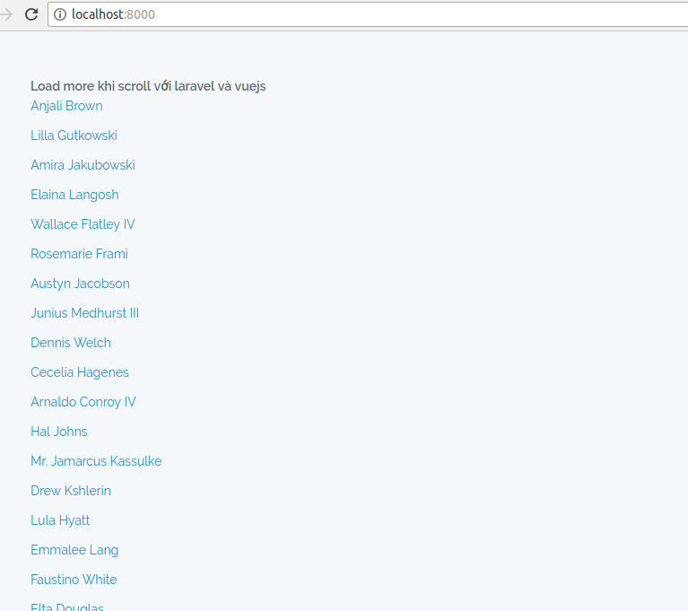Chúng ta có một cách phân trang nữa đó là load more, kiểu phân trang này rất tiện lợi, khi bạn cuộn (scroll) thì nó sẽ tải thêm dữ liệu và đẩy xuống phía dưới. Vì vậy, trong hướng dẫn này, mình sẽ thực hiện load more bằng cách sử dụng Laravel và Vue.