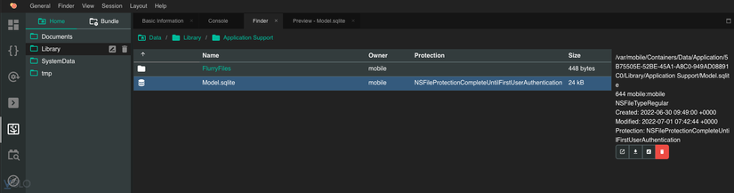 Local storage là nơi đảm nhiệm việc lưu các dữ liệu của ứng dụng trên thiết bị iOS, tương ứng với khối Data container đã đề cập ở phần trên. Tại đây có rất nhiều thứ cần chú ý và kiểm tra khi thực hiện kiểm thử bảo mật cho ứng dụng iOS. Để kiểm tra và đọc dữ liệu trong local storage chúng ta có thể sử dụng phần mềm GrapeFruit (https://github.com/ChiChou/grapefruit).